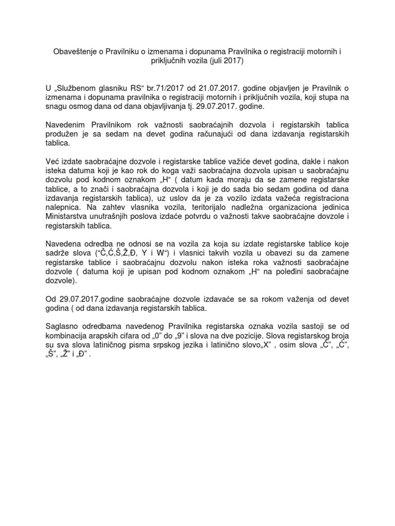 Izmjene I Dopune Pravilnika O Registraciji I Oznacavanju Vozila Radio Nova Gradiska from radiong.hr Time su za građane značajno pojednostavljene sve registracijske procedure, rekao je pomoćnik uprave za tehničke poslove u centru za vozila hrvatske goran pejić. Temelj svega su izmjene zakona o sigurnosti prometa na cestama koje su stupile u studenome, dok je od nove godine stupio na snagu pravilnik o registracijama i oznakama vozila. Pravilnik o registraciji i označavanju vozila (narodne novine, br.