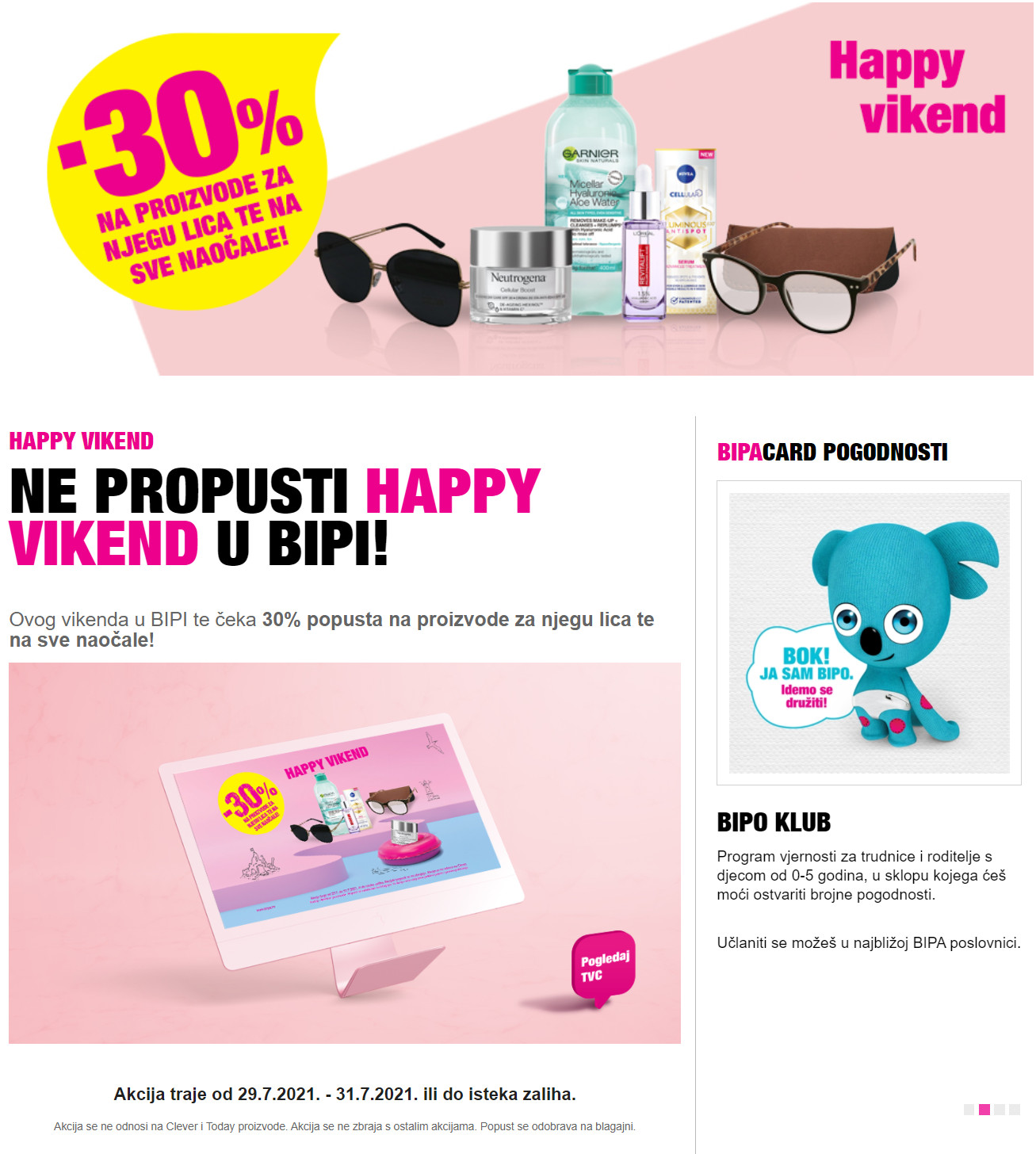 Tokom cijele godine ostvaruješ 10% popusta na cjelokupan baby asortiman; Ukoliko nemaš bipacard ili bcdigital karticu, pridruži nam se na viberu i zatraži bcdigital karticu. Učlani svoje dijete na www.bipoklub.hr i oboje vas čekaju brojne pogodnosti. Brojne druge specijalne ponude i iznenađenja