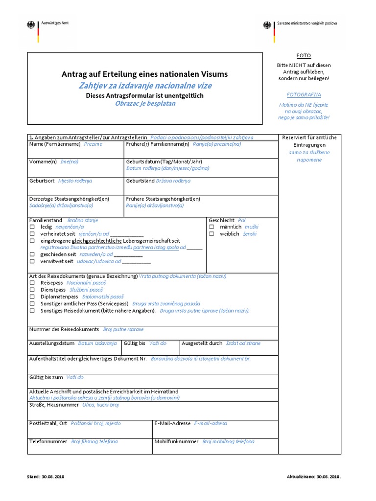 Zahtjev Za Izdavanje Nacionalne Vize Pdf