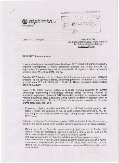 Pismo Namjere Otp Banke D D O Dogradnji Doma Kulture S