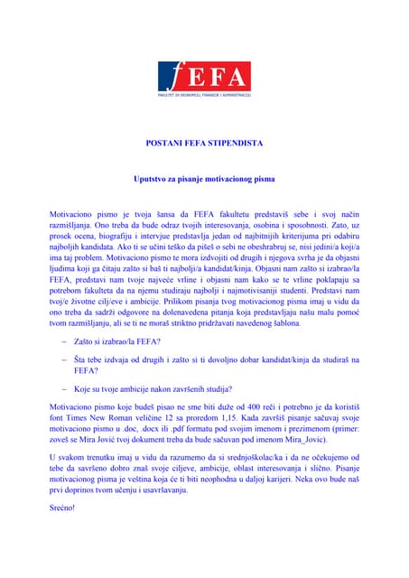 Uz dobar životopis ono što će vas istaknuti među ostalim kandidatima za posao i pomoći vam da vas potencijalni poslodavac primijeti motivacijsko je pismo. Naj tvoje pismo ne bo generično kajti to kaže pomanjkanje zanimanja in. Sara Demiri prije 3 godine Komentiraj.