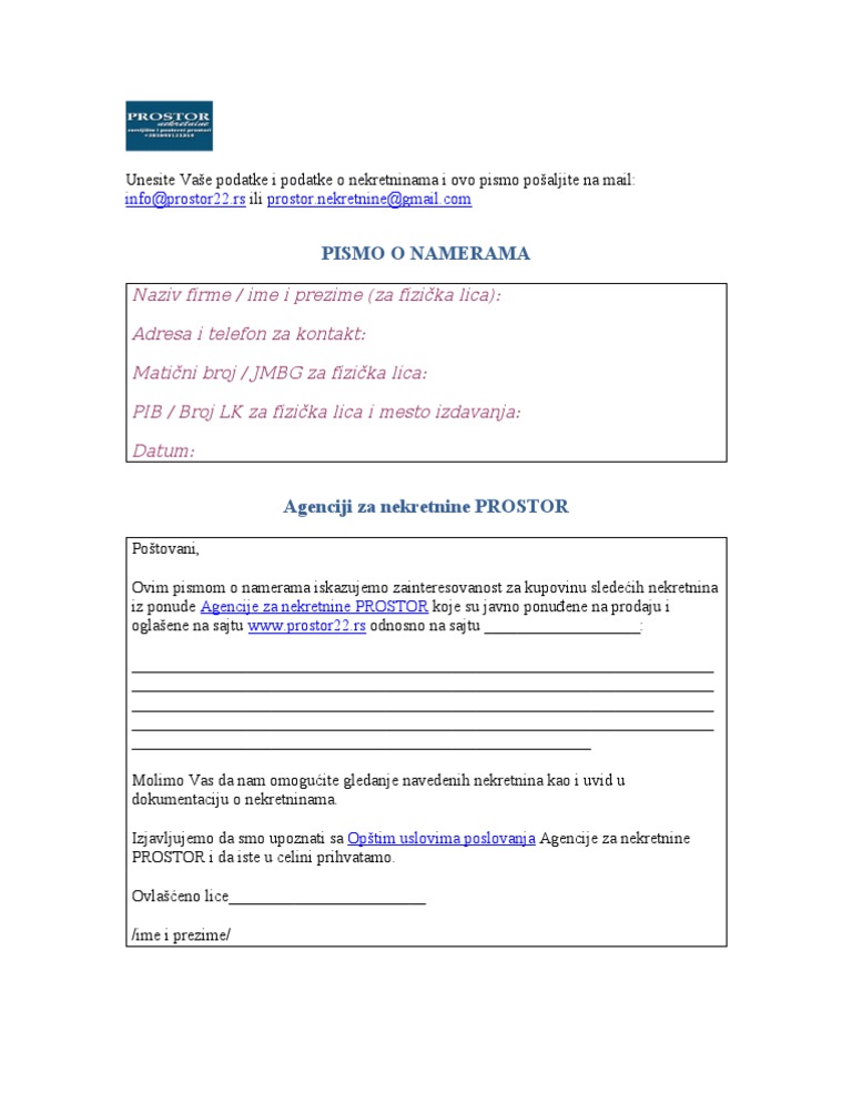 U tom slučaju prodavac pre zaključenja ugovora o prodaji nepokretnosti od banke dobija pismo o namerama u kojem se banka obavezuje da će nakon izmirenja celog duga izdati dozvolu sa brisanje hipoteke brisovnica Pored pisma o namerama prodavac od banke mora da zatraži i potvrdu o stanju duga kako bi se utvrdilo koliko je ukupno. Banka Poštanska štedionica u kojoj je Srbija vlasnik 79 odsto kapitala zainteresovana je za kupovinu Komercijalne banke Banjaluka i pismo o namerama već je upućeno u Ljubljanu NLB Grupi koja je vlasnik matične Komercijalne banke Beograd piše portal Capital. Unapredite poslovanje korišćenjem obavezujućeg pisma o namerama kojim vam Banka garantuje odobrenje proizvoda ili.