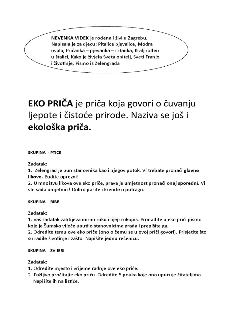 Pika Vončina Nevenka Videk kaže da Radoznalu djecu stalno nešto zapitkuje i pita Veseleći se svakom djetetu koje knjige čita. Live worksheets Croatian Hrvatski jezik Lektira Pismo iz Zelengrada - likovi. 5 Tko peče tortu.